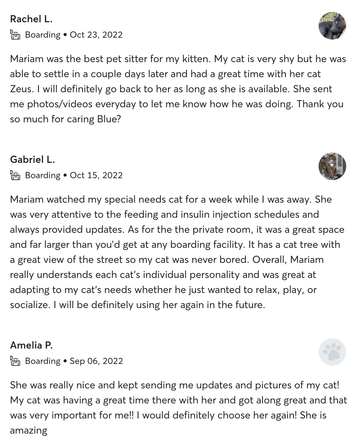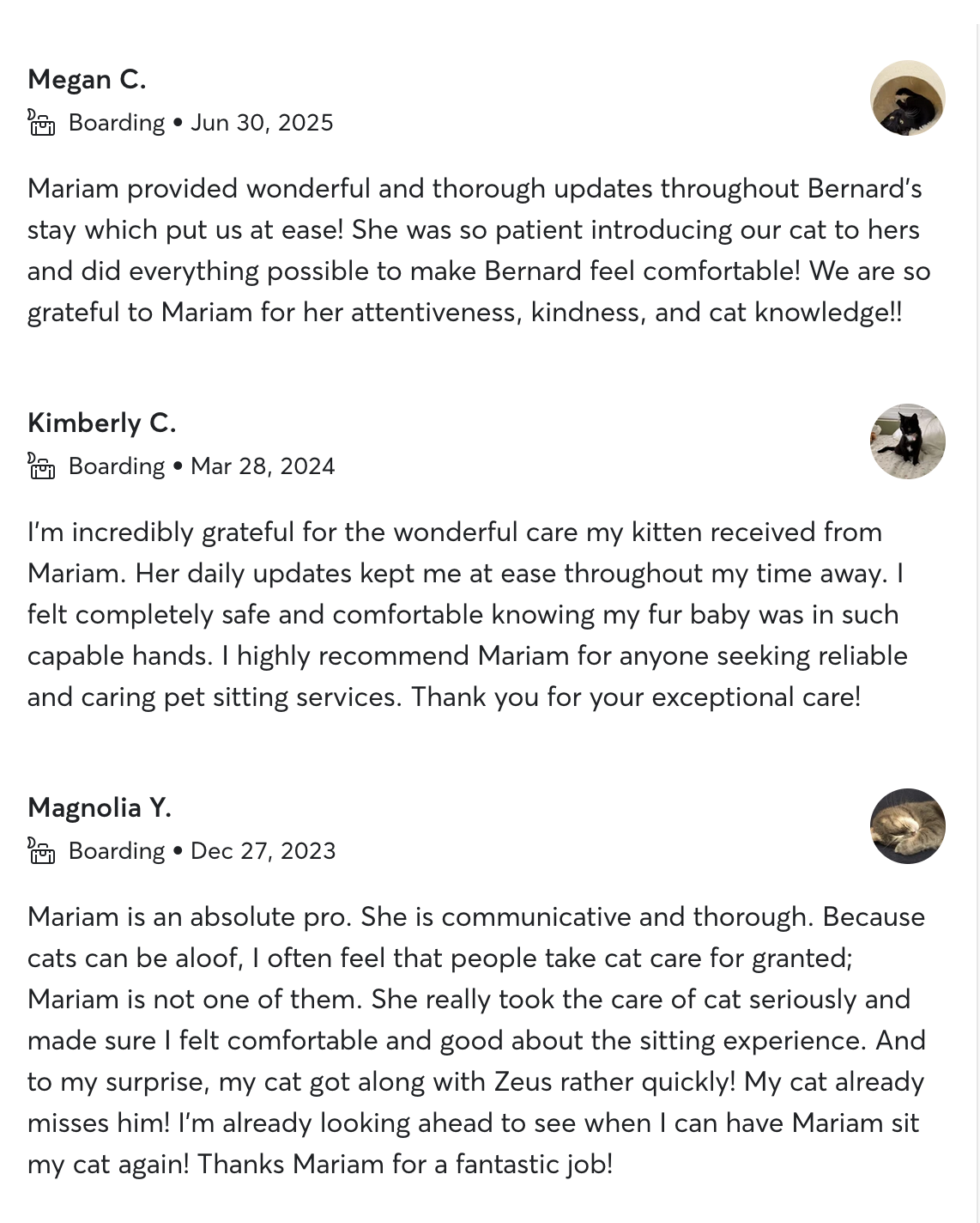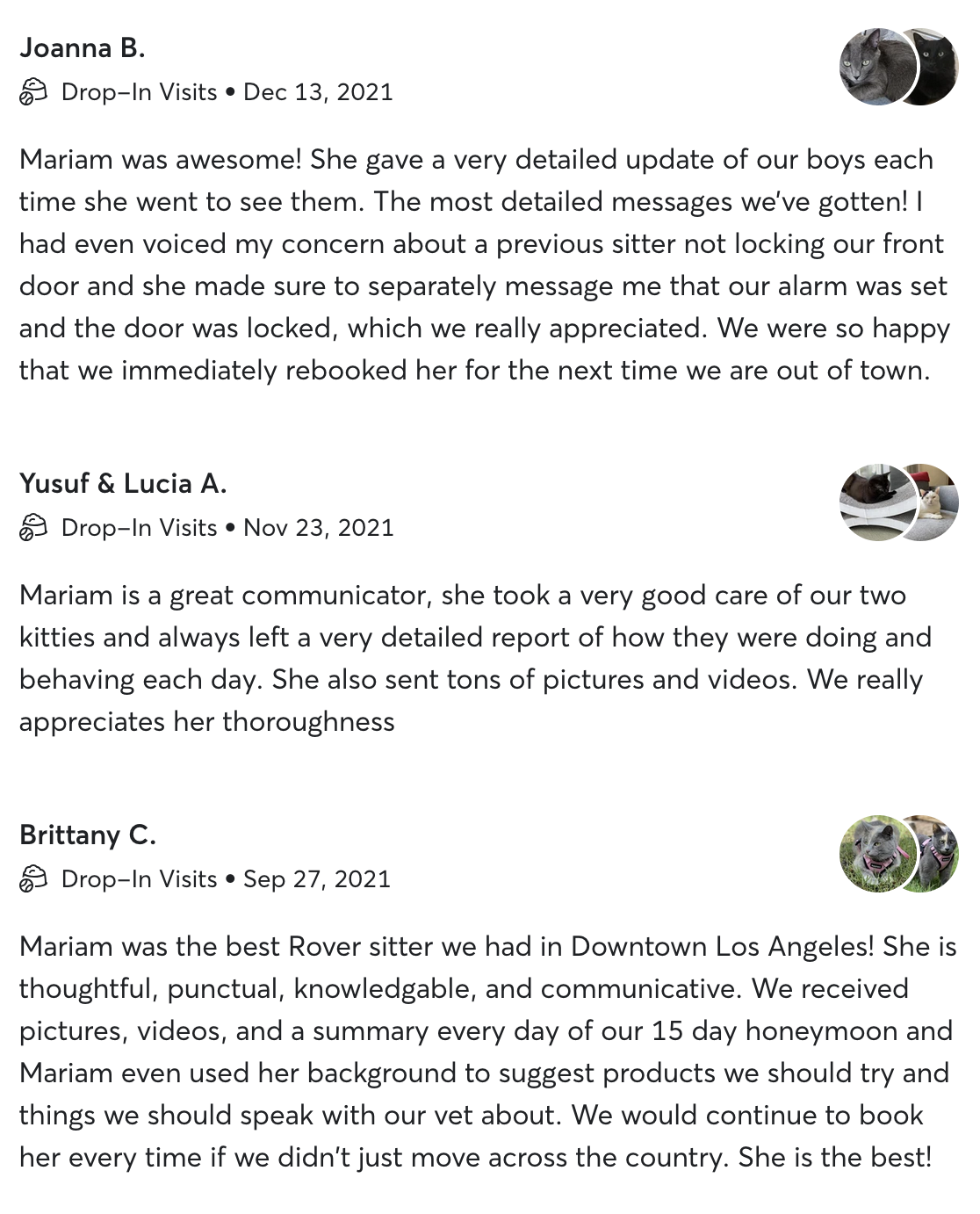 Reviews from my petsitting clients